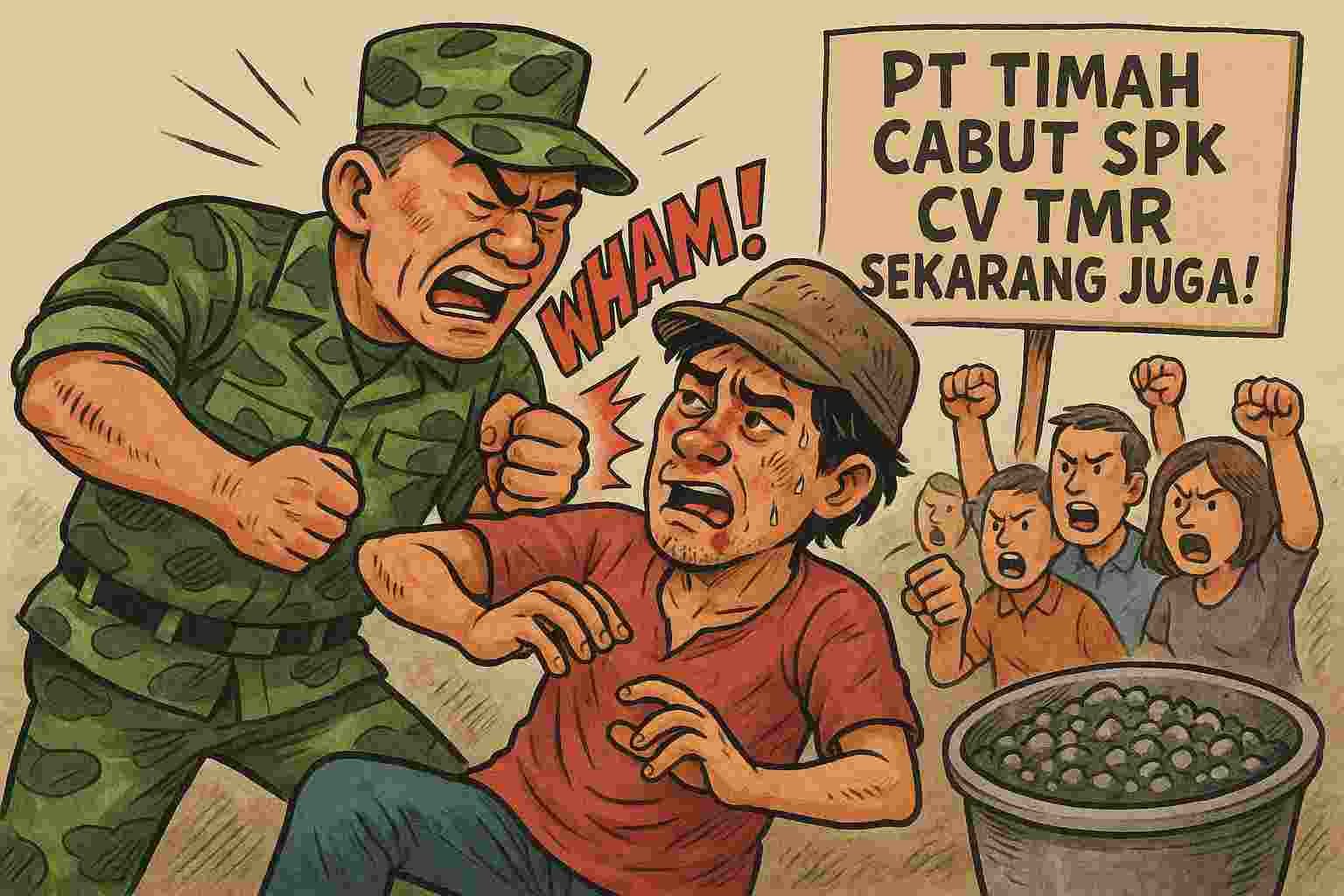 Bangka, Sabtu (29/11/2025) — Polemik tambang timah di kawasan “Kepala Burung” PT GML kembali memanas. Seorang pelimbang timah, Rohit alias Jodi (20), warga Bukit Layang dan berstatus mahasiswa, diduga dipukul dan dikeroyok oleh sejumlah oknum TNI yang disebut-sebut bertugas sebagai pengamanan CV Tri Mitra Resource (TMR).
