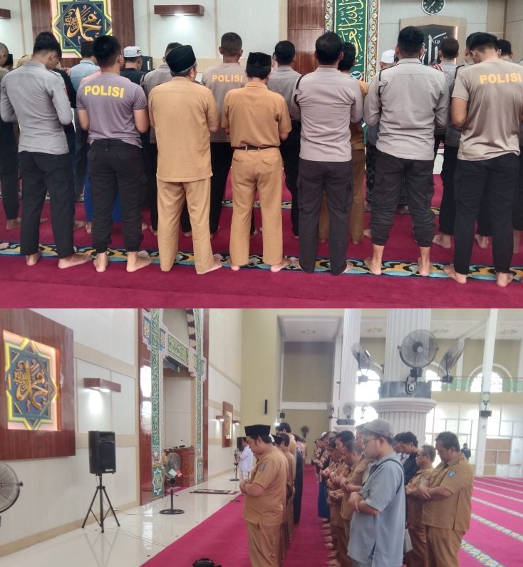Bangka Tengah – Polres Bangka Tengah menggelar Shalat Gaib sebagai bentuk belasungkawa atas gugurnya tiga anggota Polri terbaik dalam pelaksanaan tugas di Way Kanan, Lampung. Shalat Gaib ini dilaksanakan di Masjid Ar-Raihan, Koba, dan diikuti oleh jajaran Polres Bangka Tengah, Forkopimda Bangka Tengah, serta masyarakat. Selasa (18/03/25).