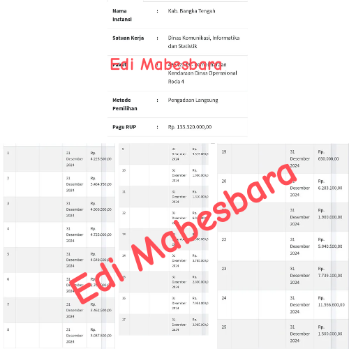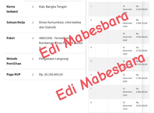 Bangka Tengah, – Dewan Pimpinan Wilayah (DPW) Lembaga Masyarakat Bersatu Membangun Bangsa dan Negara (Mabesbara) Babel yang diketuai oleh Edi Muslim, A.Md mempertanyakan dugaan penyimpangan anggaran dalam proyek pemeliharaan kendaraan dinas di Dinas Komunikasi, Informatika, dan Statistik Kabupaten Bangka Tengah tahun 2024.