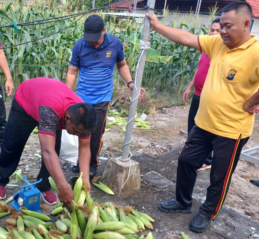 Manfaatkan Lahan Kosong, Polsek Koba Panen Jagung Untuk Ketahanan Pangan
